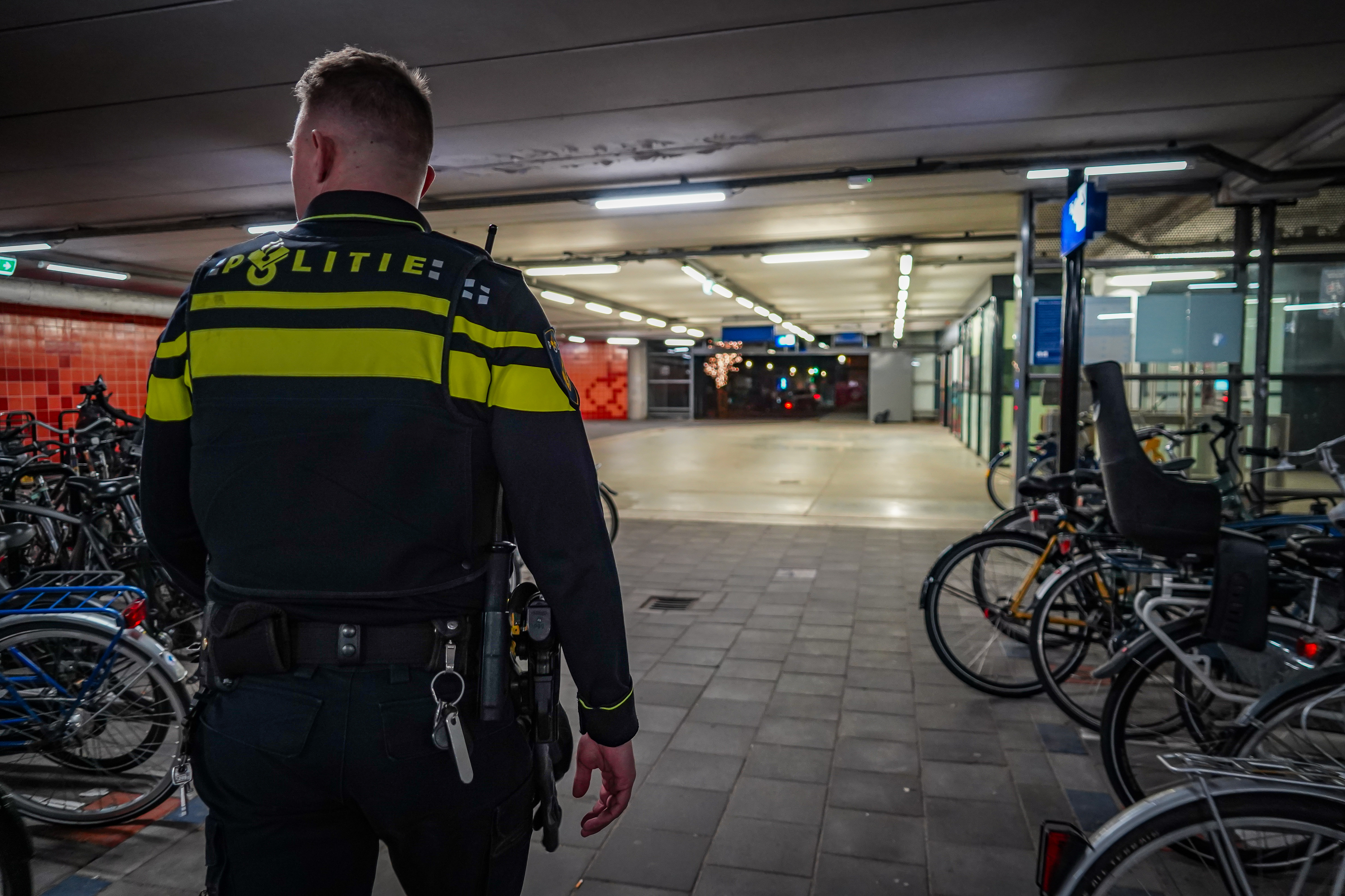 Tussendoor werd er toezicht gehouden op station Schiedam Centrum. Een plek waar regelmatig overlast is en waar ook veel fietsen worden gestolen. Hier zie je een andere kant van het werk, waarbij aanwezigheid alleen al belangrijk is.